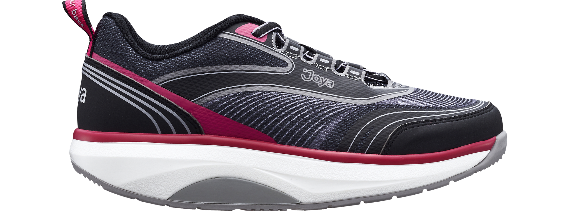 Dynamischer Schnürschuh mit atmungsaktivem Mesh-Obermaterial, unterstützt durch laminierte Druckdetails und eine synthetische Fersenkappe. Die Joya Curve Sohlentechnologie unterstützt die natürliche Abrollbewegung und fördert das aktive Gehen. Sie zwingt den Träger zu vermehrtem Balancieren, um das Gleichgewicht zu halten, stärkt so die Muskulatur und fördert eine gesündere Haltung und entlastet Rücken und Gelenke.