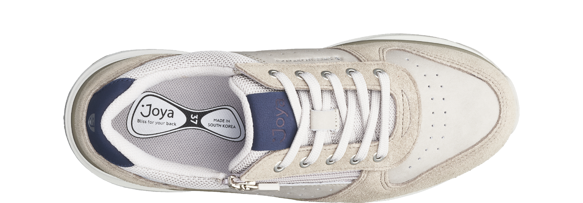 Dazzling lace up sneaker with a retro vibe, featuring an additional zip for easy entry and breathable, soft mesh lining. Implemented with the Joya Active sole technology that guarantees an ideal combination of cushioning, rebound and stability. For fashionable people always on the move, who never compromise on comfort.