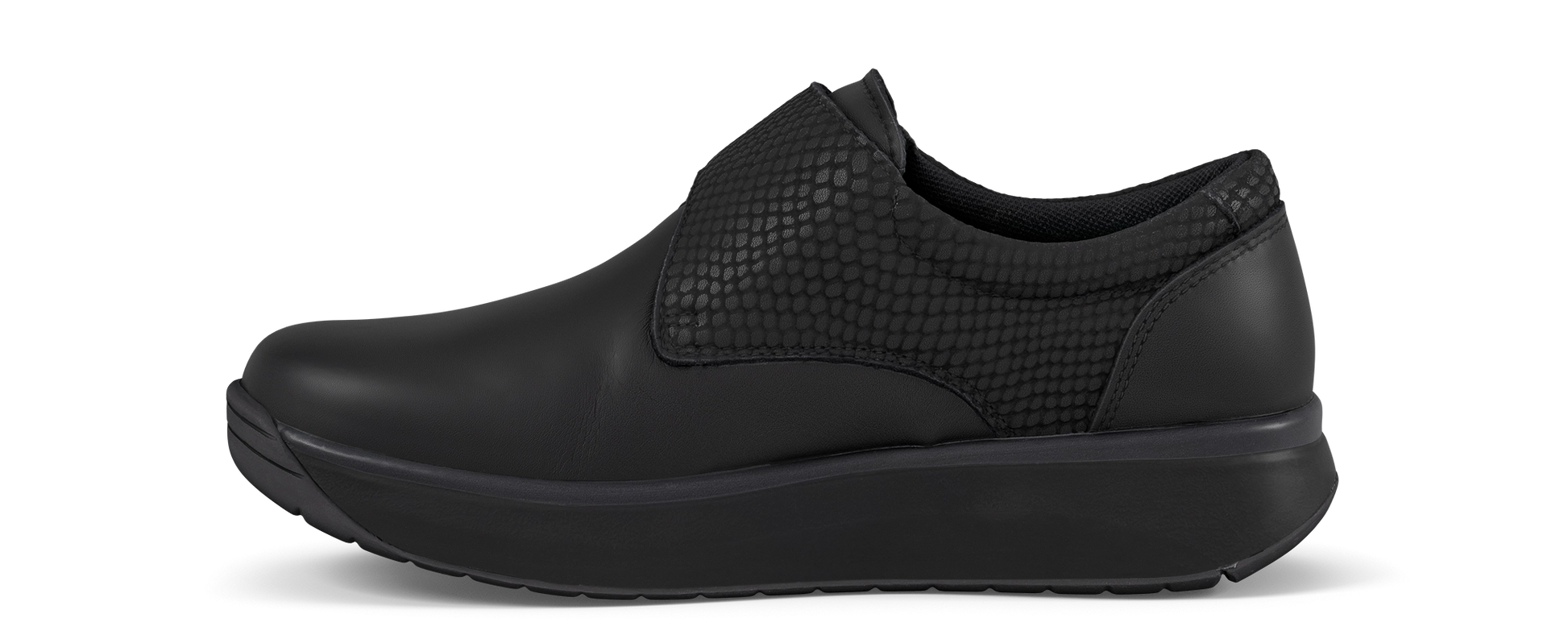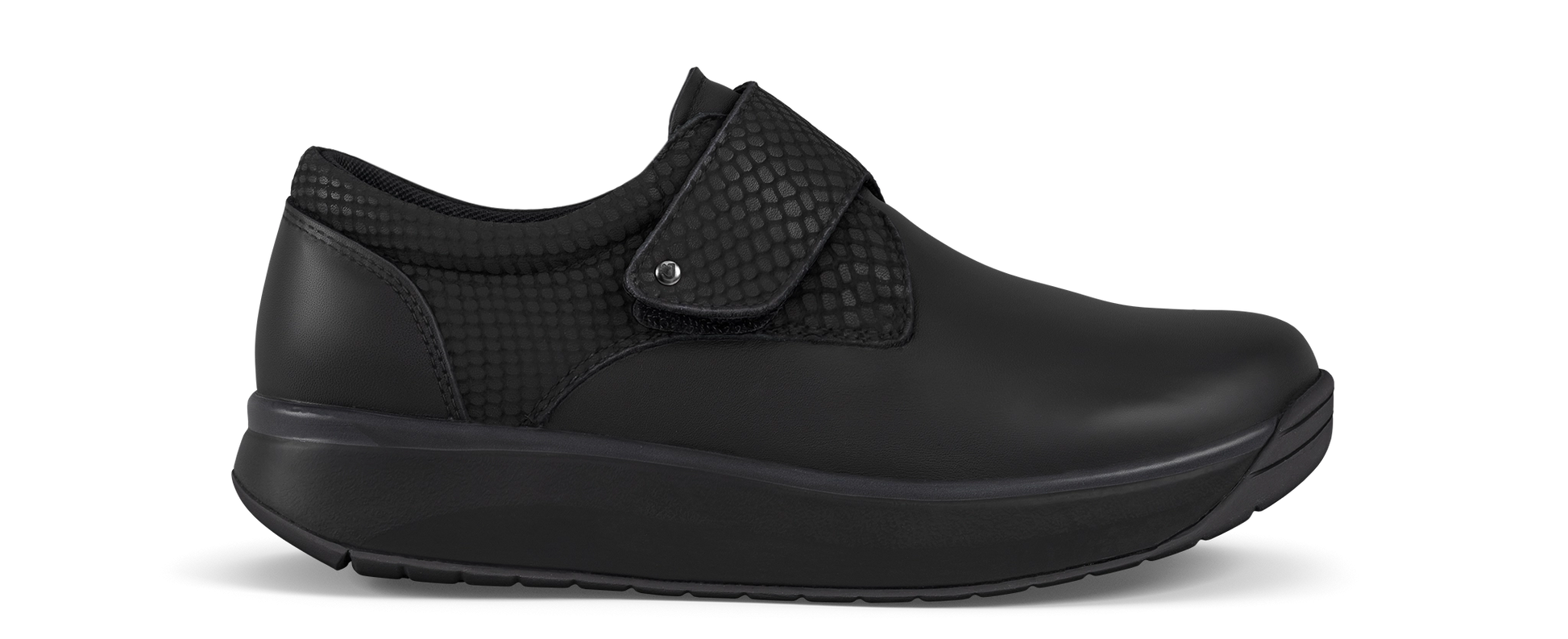 Soft touch leather shoe with sophisticated snake embossed details, velcro closure and streatchable lining to avoid pressure points on your feet for a 360 degrees comfort feeling. Featured with the Joya Senso sole technology that ensures excellent cushioning effect and balanced pressure distribution, and delivers optimum comfort and relief for your back muscles, joints and feet daily stress.