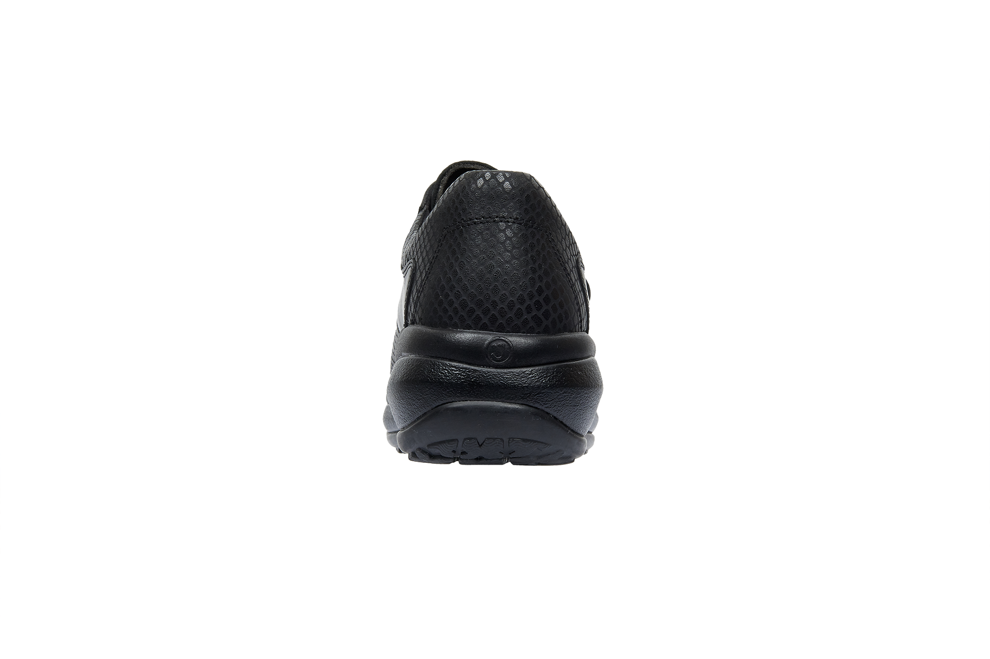 Leather shoes with front velcro closure. Upper in combination of soft full grain leather and reptile embossed leather. Extra soft padded lining on the front provides soft and comfortable fitting, especially will fit for the people with a sensitive forefoot area. Sole with a strong cushioning effect provides optimum relief for your back muscles and joints. Suitable for people with a sensitive back and with feet and joints exposed to daily stress.
