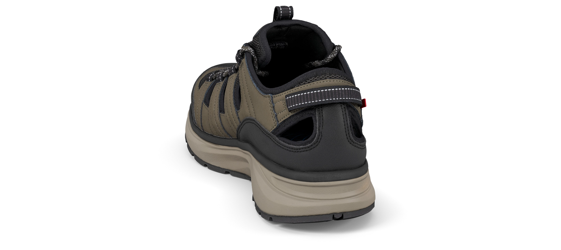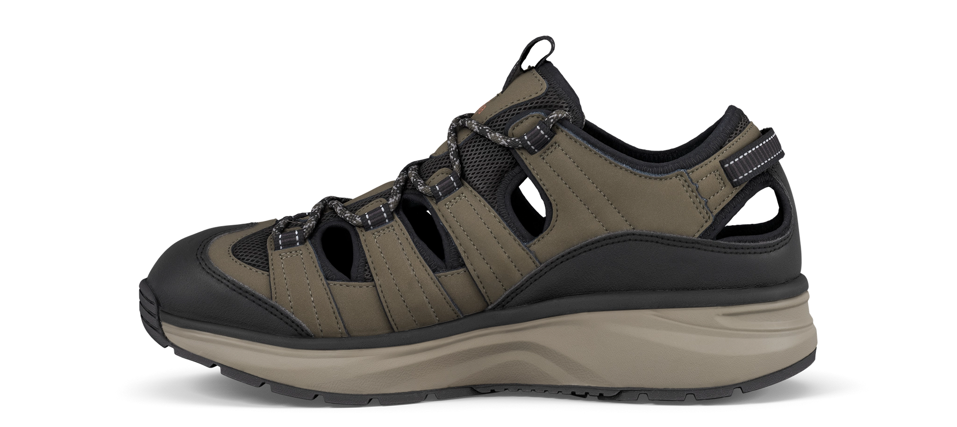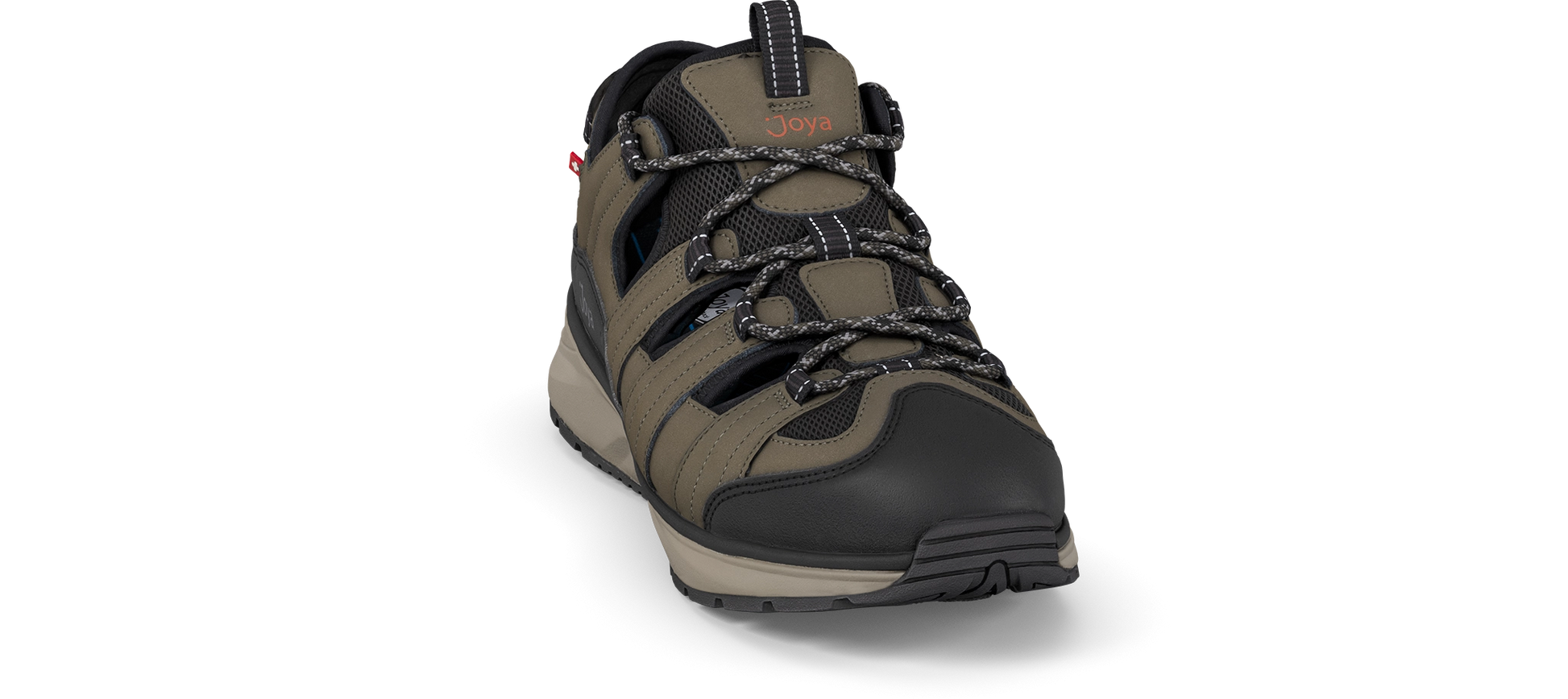 Sandalia de puntera cerrada de piel nobuck robusta con forro de nopreno acolchado suave y elástico y cordón para un ajuste rápido y fácil. Extremadamente cómoda y totalmente transpirable, gracias a las ventilaciones abiertas en la parte superior. Implementado con la tecnología de suela Joya Active que garantiza una combinación ideal de amortiguación, rebote y estabilidad. Para personas dinámicas y siempre en movimiento, que necesitan comodidad en la acción y rendimiento en cualquier superficie.