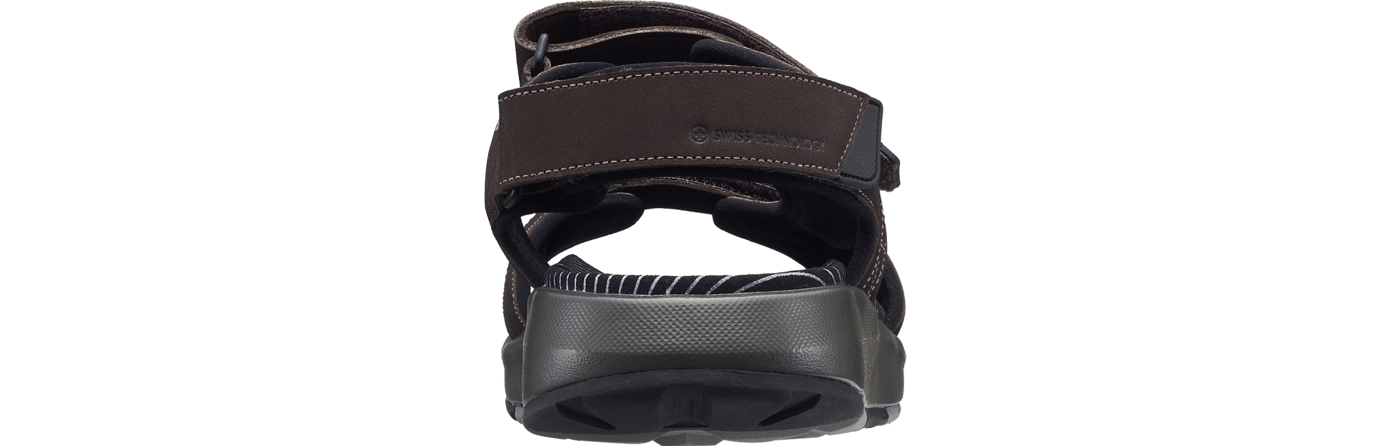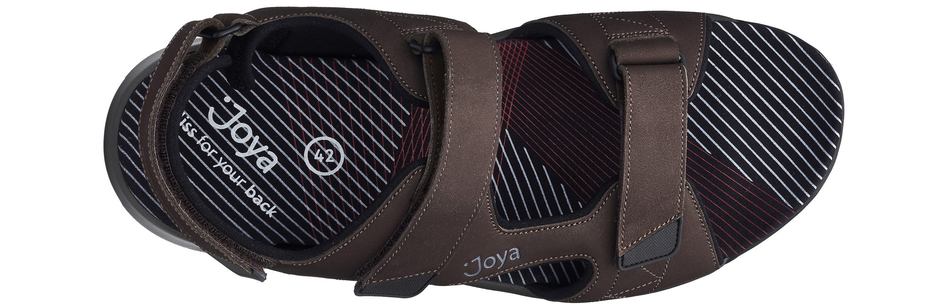 Elegante sandalia de exterior de nobuk con forro de neopreno suavemente acolchado y correas de velcro ajustables en el talón, el empeine y el antepié. Equipado con una plantilla ergonómica envuelta con microfibra suave. Implementado con la tecnología de suela Joya Active que garantiza una combinación ideal de amortiguación, rebote y estabilidad. Para personas dinámicas y siempre en movimiento, que necesitan comodidad en la acción y rendimiento en cualquier superficie.