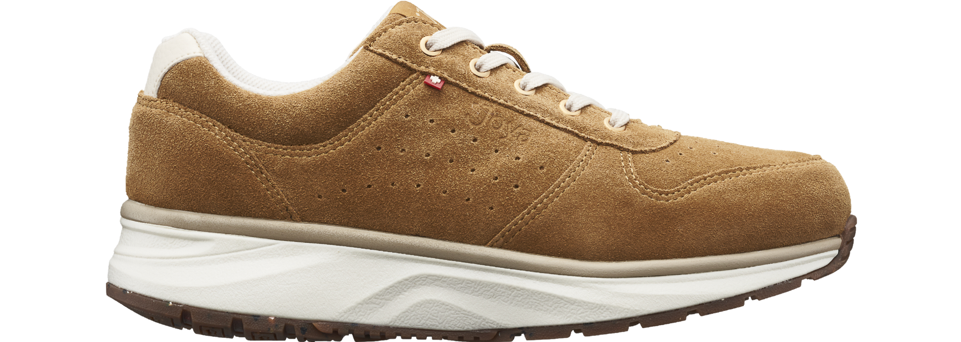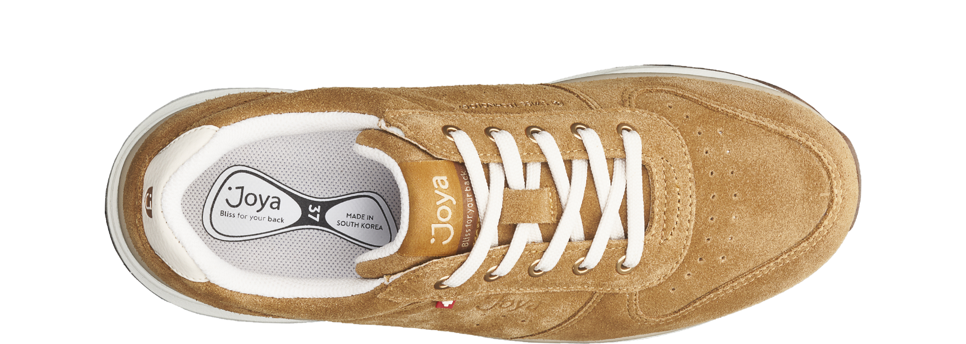 Zapatilla con cordones de aire retro y toque elegante. Parte superior de piel aterciopelada con forro de malla suave y transpirable. Implementado con la tecnología de suela Joya Active que garantiza una combinación ideal de amortiguación, rebote y estabilidad. Para gente a la moda, siempre en movimiento, que nunca renuncia a la comodidad.