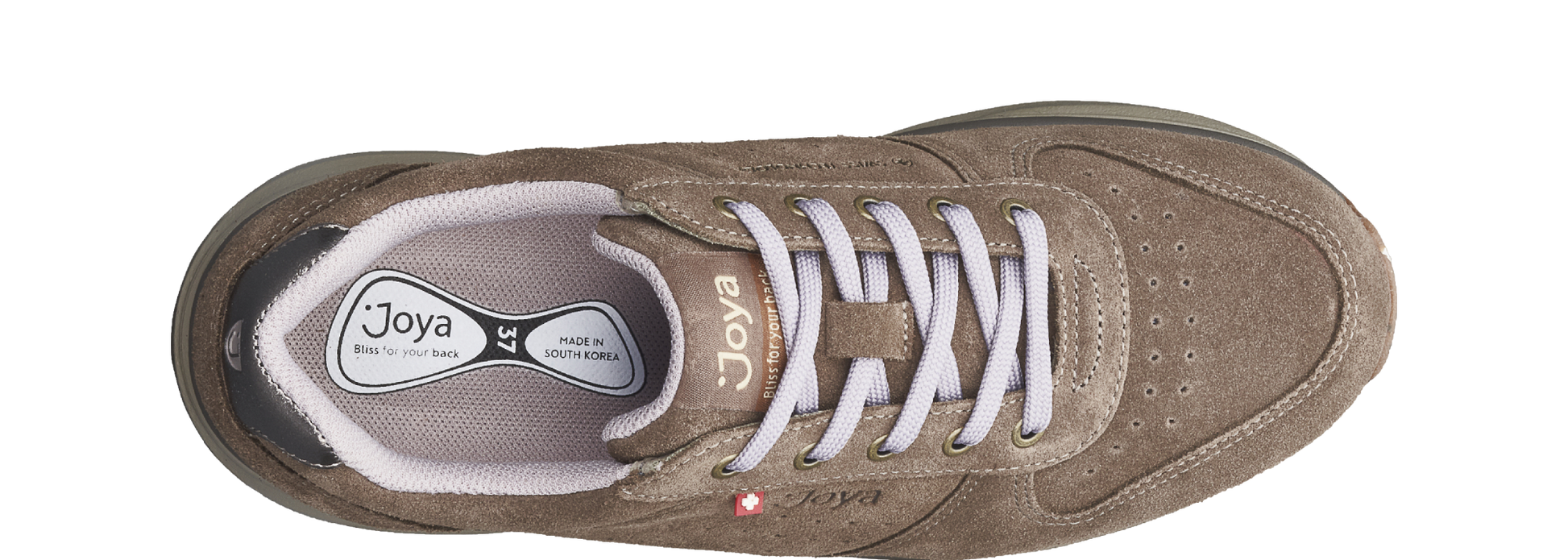 Zapatilla con cordones de aire retro y toque elegante. Parte superior de piel aterciopelada con forro de malla suave y transpirable. Implementado con la tecnología de suela Joya Active que garantiza una combinación ideal de amortiguación, rebote y estabilidad. Para gente a la moda, siempre en movimiento, que nunca renuncia a la comodidad.