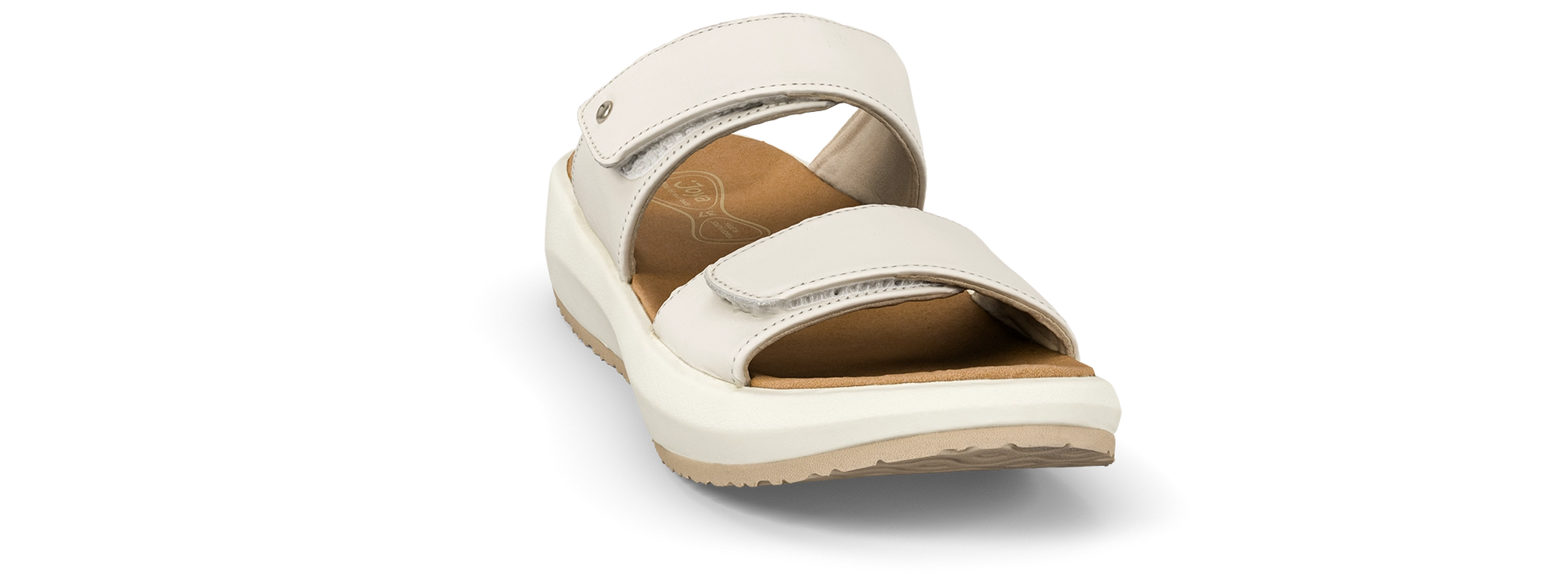 Tu mejor amigo para el confort diario. Sandalia de dos tiras de cuero de grano completo, suave y elegante, con velcro para un ajuste rápido y adaptable. Enriquecida con un forro y plantilla de microfibra sedosa y una suela exterior de EVA ligera y resistente a la abrasión. Cuenta con la tecnología de suela Joya Senso que garantiza un excelente efecto amortiguador y una distribución equilibrada de la presión, proporcionando un óptimo confort y alivio para el estrés diario de los músculos de la espalda, articulaciones y pies.