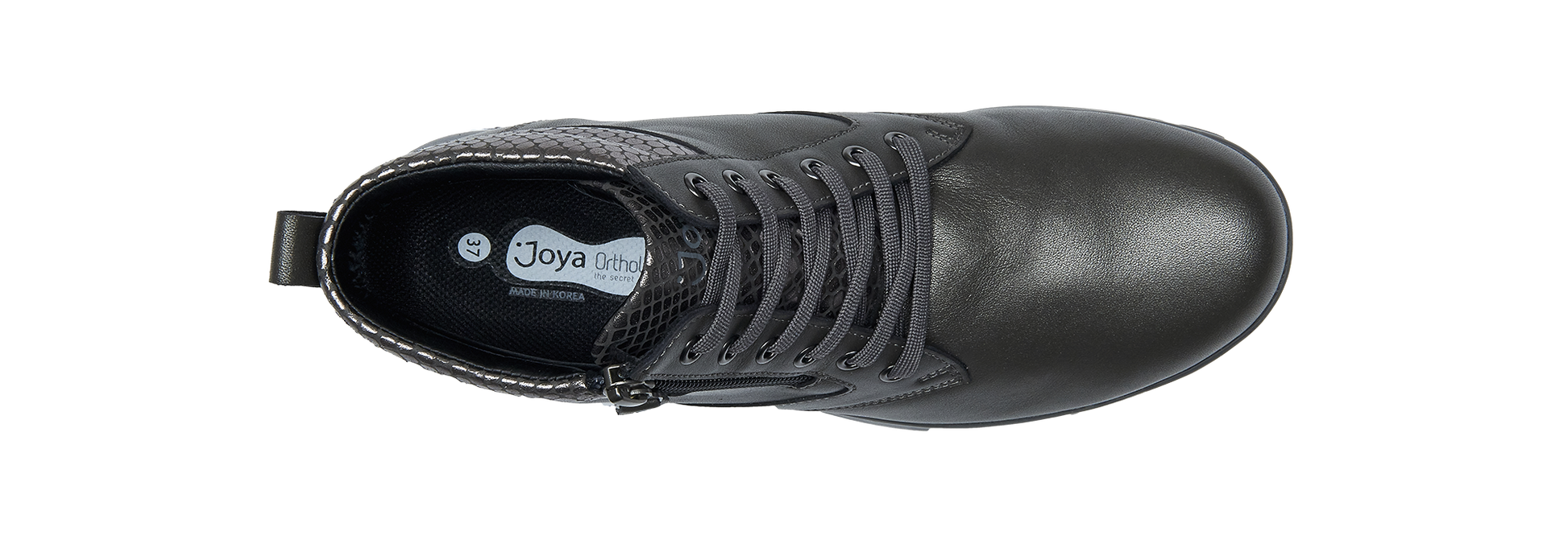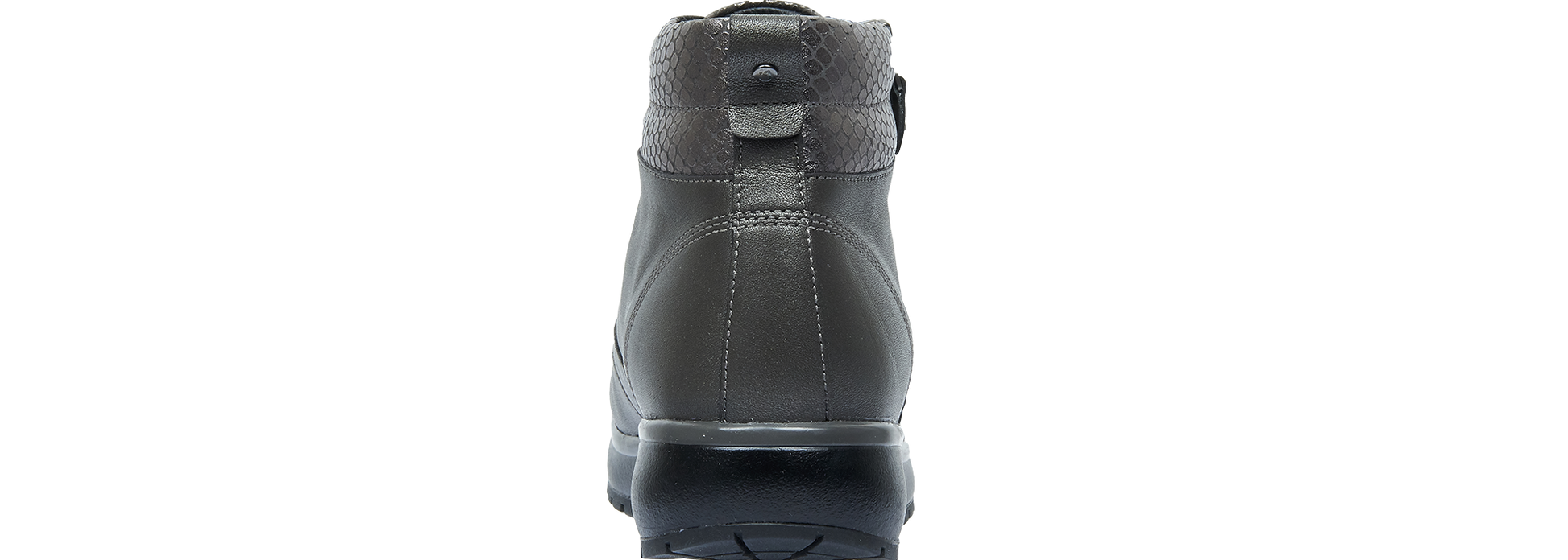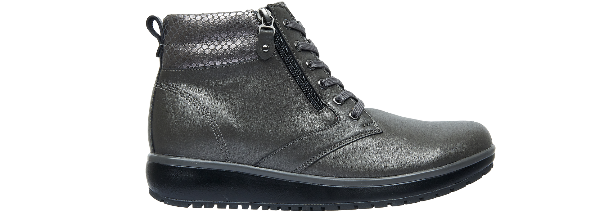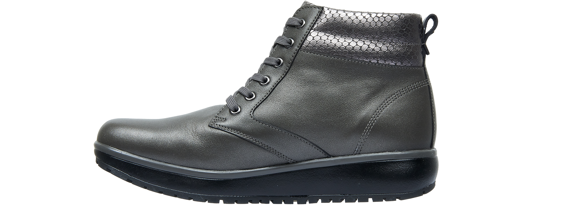 Bottines mi-hautes en cuir pleine fleur couleur perle avec doublure cuir. Ce modèle est doté d'une fermeture éclair sur le côté du laçage avant pour un chaussage et un déchaussage faciles. La doublure matelassée souple à l'avant offre un confort optimal. Elles sont particulièrement adaptées aux personnes ayant un avant-pied large et sensible. La semelle à fort effet amortissant soulage efficacement les muscles et les articulations du dos. Elles sont idéales pour les personnes ayant un dos sensible et dont les pieds et les articulations sont soumis à des contraintes quotidiennes.
